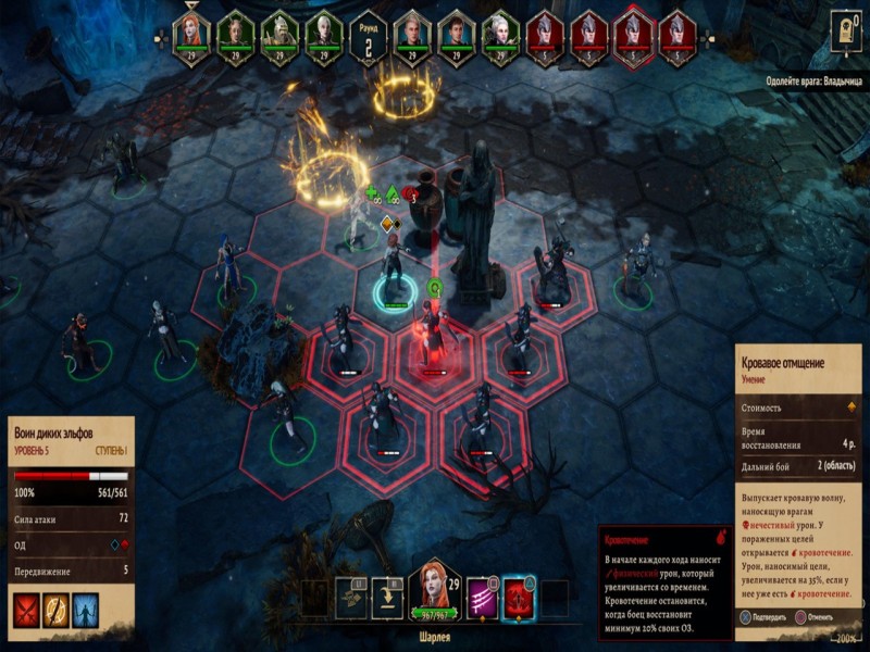 - Сражения. Можно нанять более 50 боевых единиц и собрать армию, которая подходит стилю игры. В пошаговых боях можно оттачивать навыки владения оружием и заклинаниями.